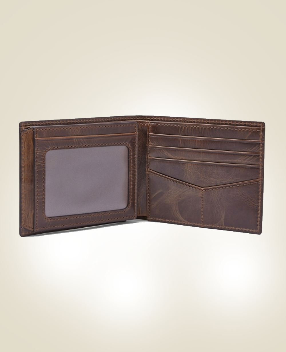 Vintage Brown Leather Bi-Fold Wallet with ID Window
